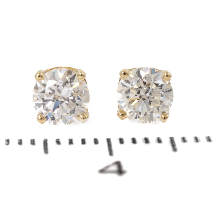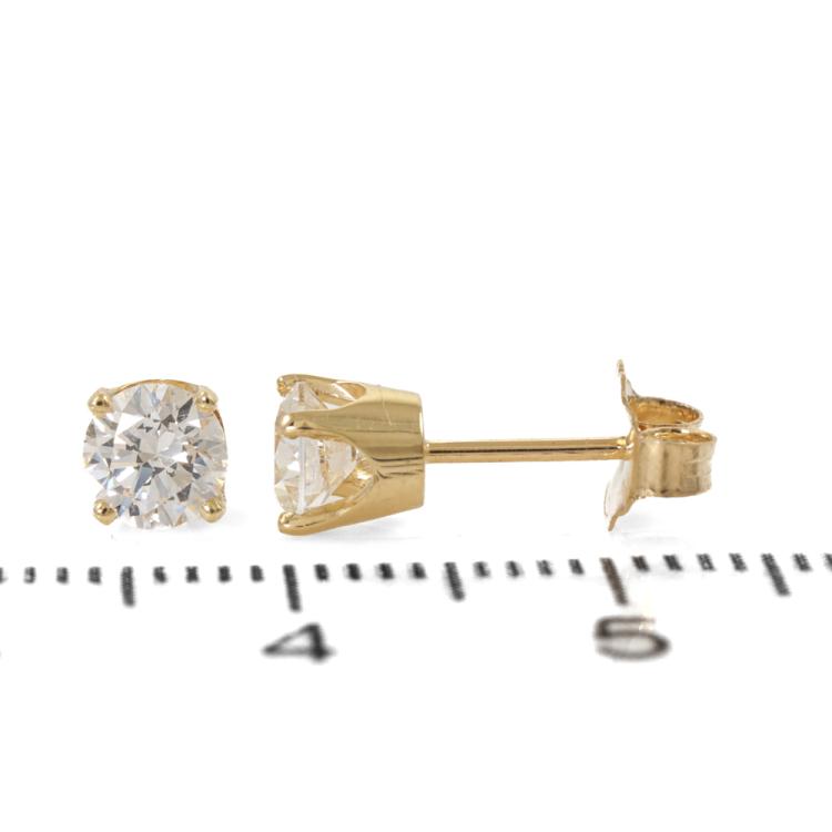 Diamond stud earrings with 2 round brilliant cut Natural Diamonds totalling 0.82ct (with GIA Summary Reports graded as D SI1 & E SI1 #7502266414, #6501732781). 18ct yellow gold. Weight: 1.3g. (New)