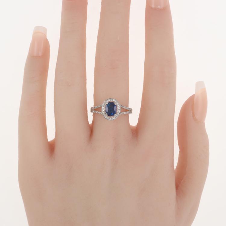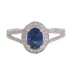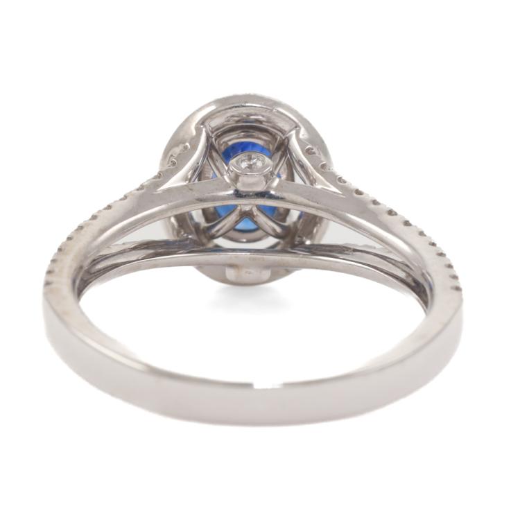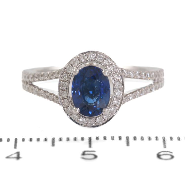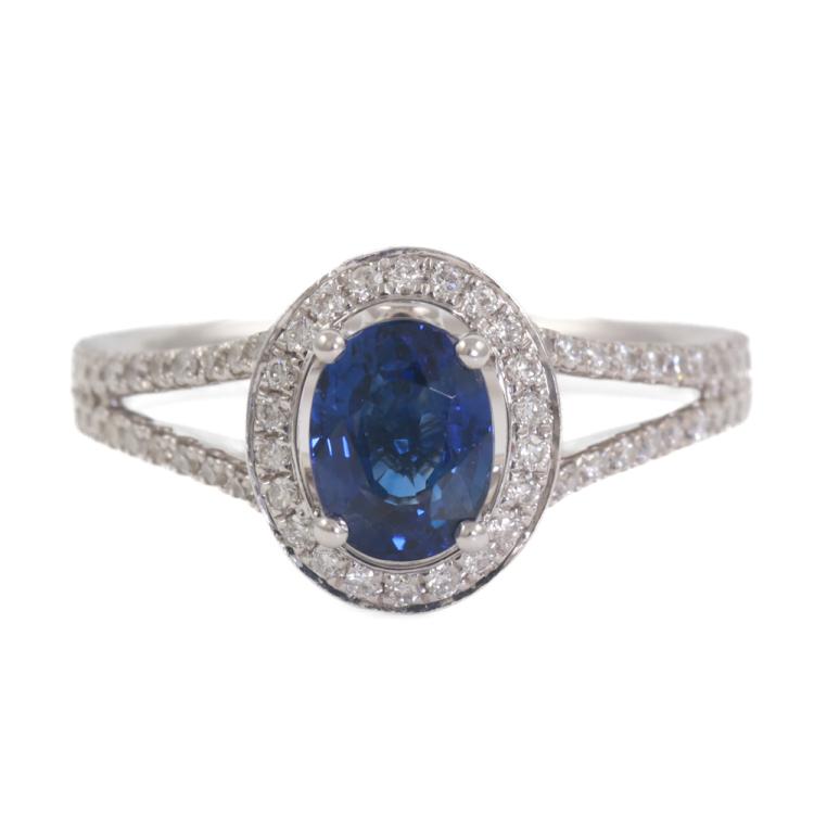 Sapphire and Diamond ring with centre oval cut Natural Sapphire totalling 1.33ct and round Natural Diamonds totalling 0.39ct (Estimated grading: H-I SI). 18ct white gold. Ring Size: L1/2. Band Width: 2.4mm - 2.7mm. Weight: 4.2g. With inscription "CTF". (Pre-owned)