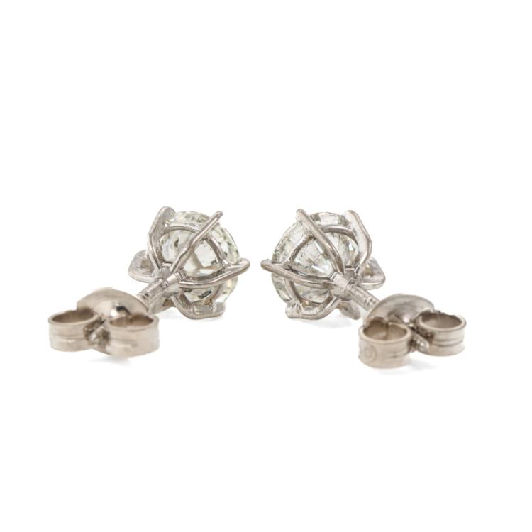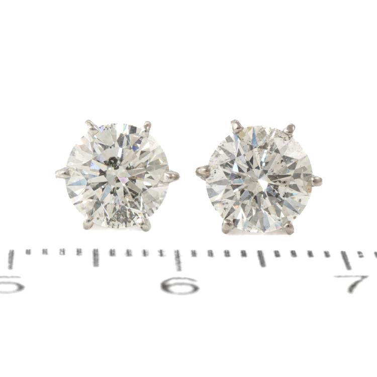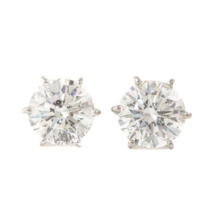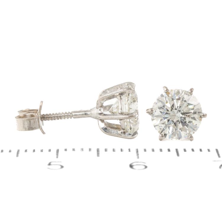 Diamond stud earrings with 2 round Natural Diamonds totalling 2.11ct (Estimated grading: J P1-P2). 18ct white gold with 18ct white gold screw backs. Weight: 1.9g. With Valuation Certificate dated 07 Feb 2025. (Pre-owned)