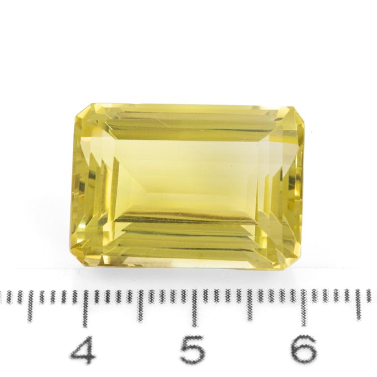 Loose emerald cut Natural Lemon Quartz totalling 31.1cts. Approximate size: 21.5 x 15.4 x 11.9mm. (New)