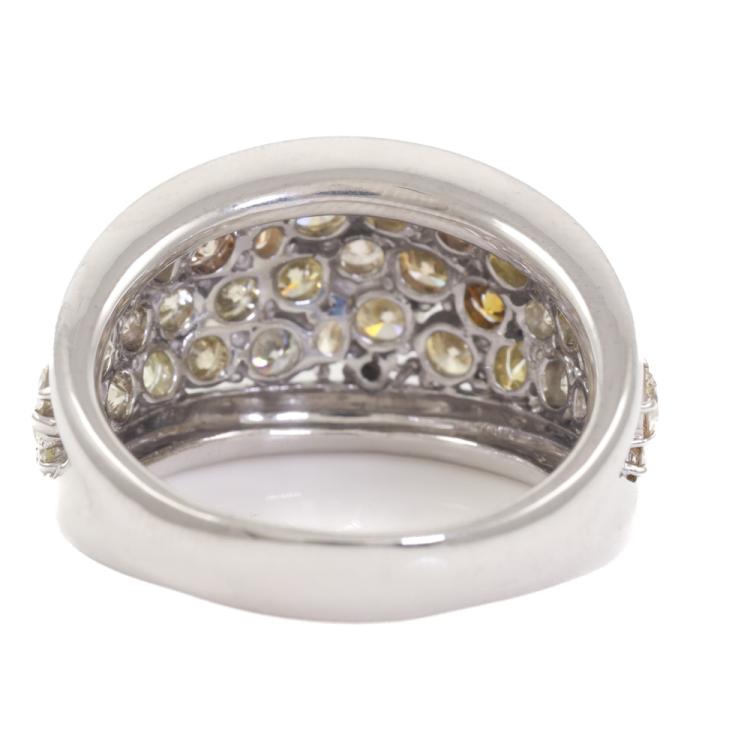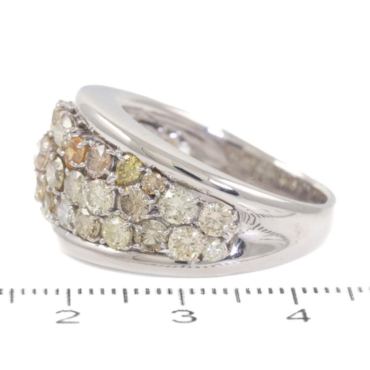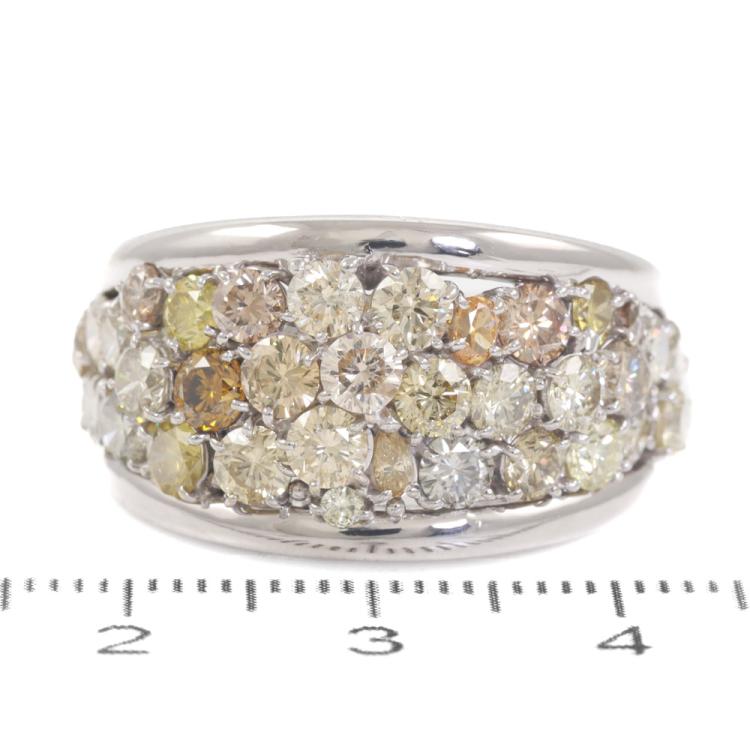 Diamond dress ring with round, oval & pear shape Natural Diamonds totalling 4.40ct (Estimated grading: Cognac, Champagne, Fancy Light Greenish Yellow, Fancy Intense Greenish Yellow, Yellowish Orange & K-M SI-P1). 18ct white gold. Ring size: U 1/2. Band width: 9.3mm - 4.2mm. Weight: 14.7g. With Certificate #419180. (Pre-owned)