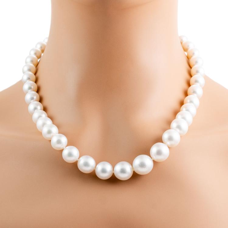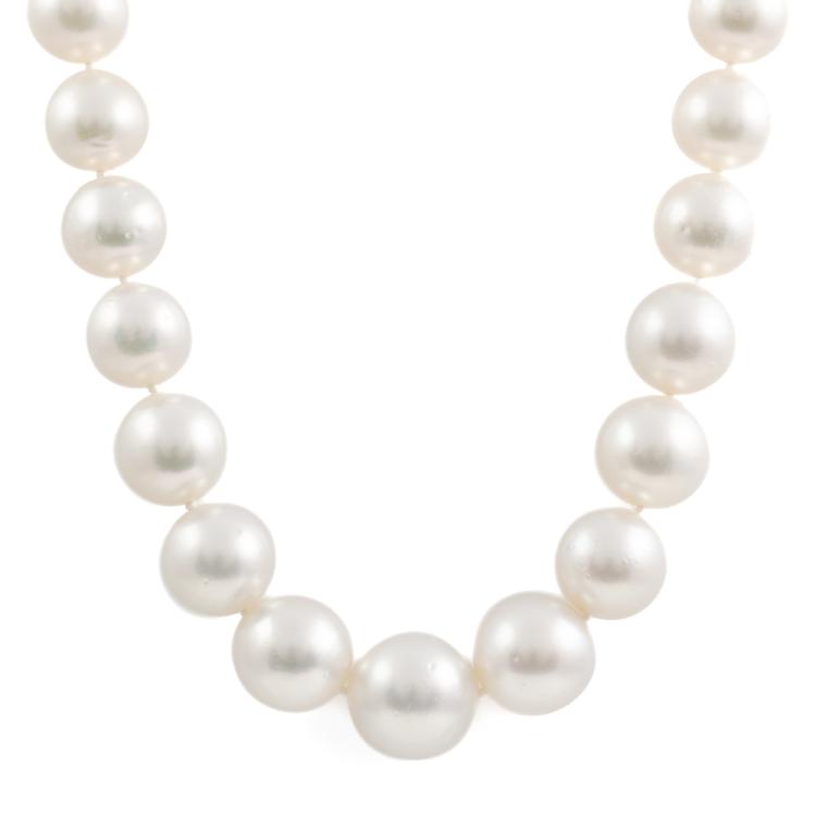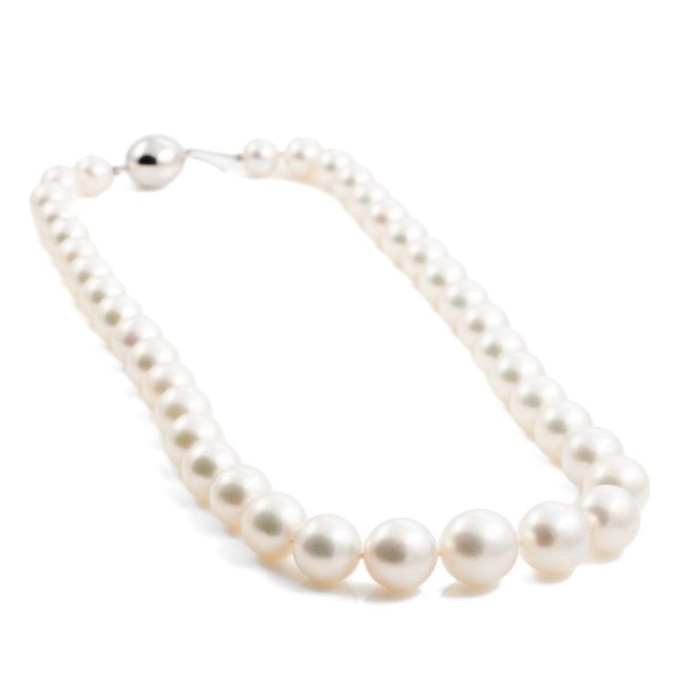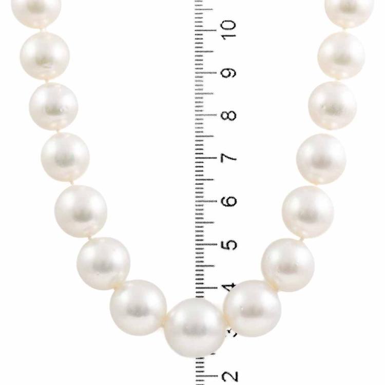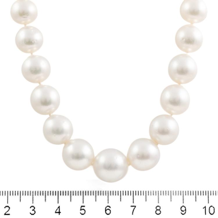Pearl necklace with 39 South Sea Pearls of 9.0mm-13.5mm. 14ct white gold clasp. Length: 47cm. Weight: 76.8g. With Certificate #418482. (Pre-owned)