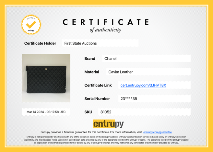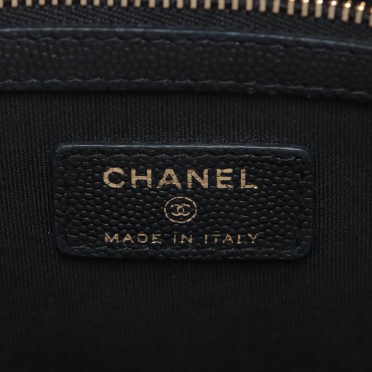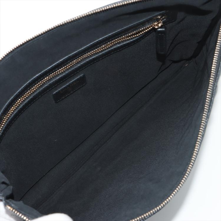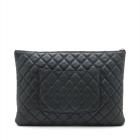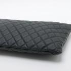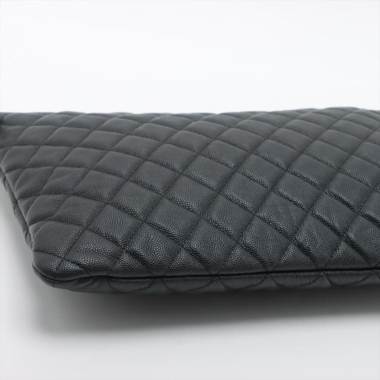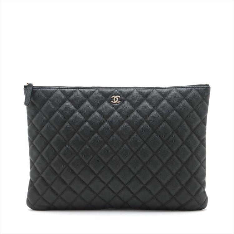 Chanel O Case Clutch in black diamond quilted Caviarskin. Featuring a tiny CC logo on the front, silver toned hardware, zip closure on top. The zip opens to a black fabric lining interior with a zipped pocket. Approximate dimensions: 34.5cm(L) x 23.5cm(H) x 2cm(D). Accompanied by Chanel certificate card and dust bag. With Entrupy Certificate of Authenticity. (Pre-owned)