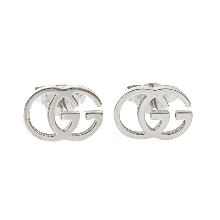 Gucci GG earrings. 18ct white gold with 18ct white gold unbranded backs. Motif size: 10.6mm x 7.6mm. Made In Italy. Weight: 1.7g. With Gucci box. (Pre-owned)