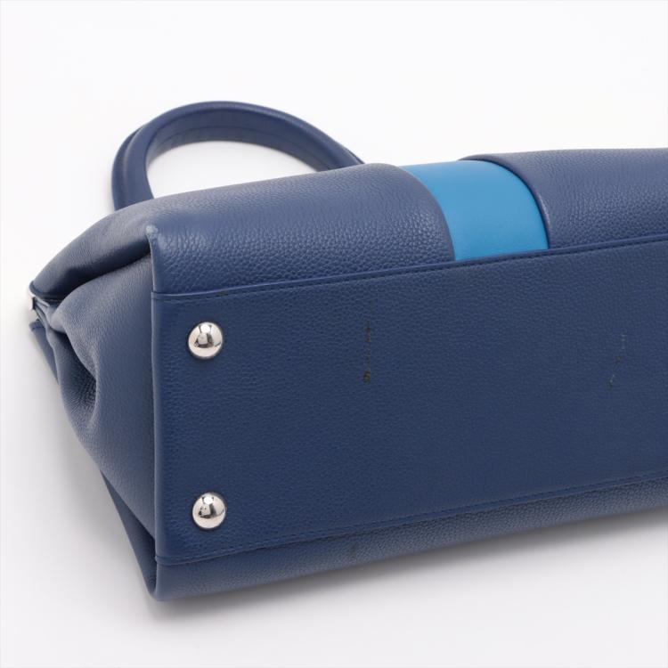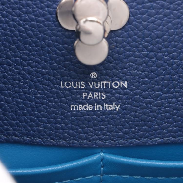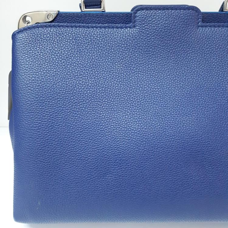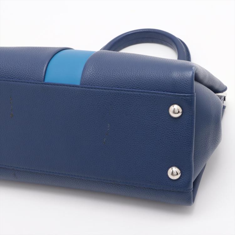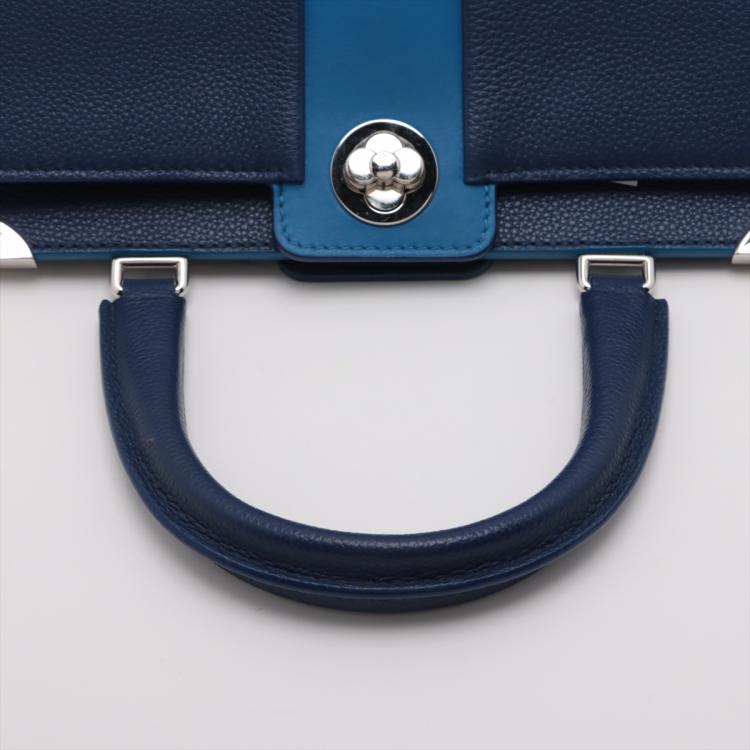 Louis Vuitton Astrid 2Way bag in blue full grain calfskin leather. Featuring silver-toned hardware, single leather handle, a light blue strip with LV monogram flower detail. The leather lining interior has 2 compartments separated by a centre divider. Approximate dimensions: 31cm(Base-L) x 21.5cm(H) x 14.5cm(D), handle drop 12cm, removable leather wide strap drop 38cm. Accompanied by a LV dustbag. With Entrupy Certificate of Authentication. (Pre-owned)