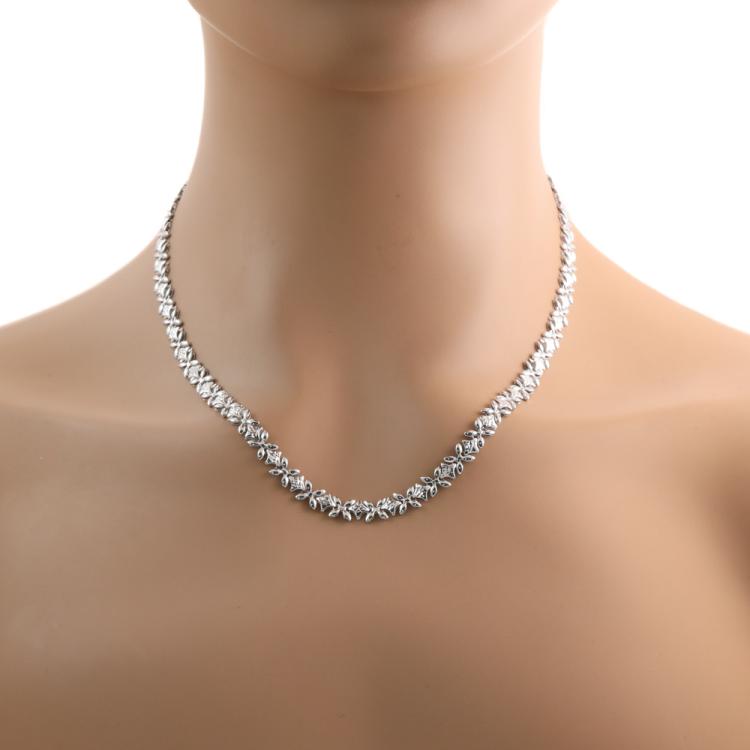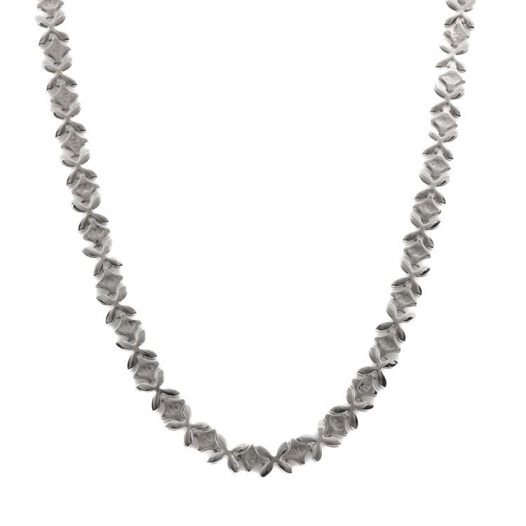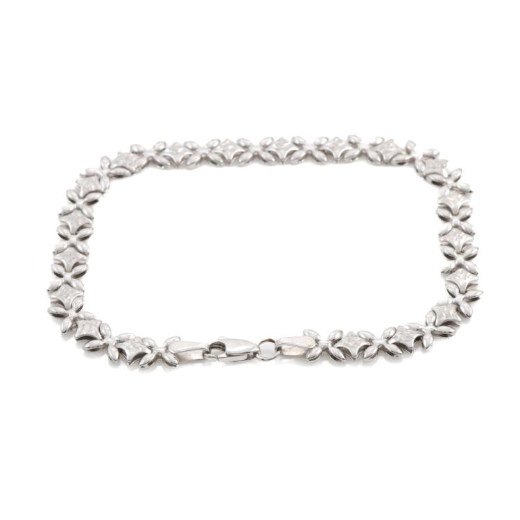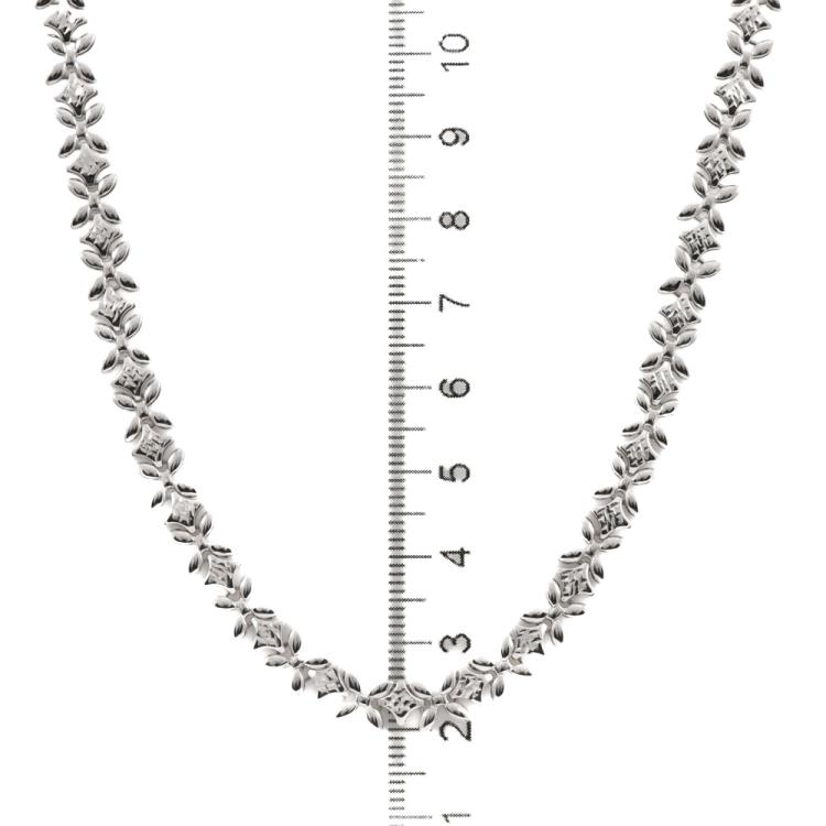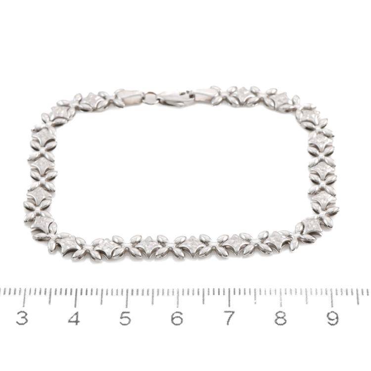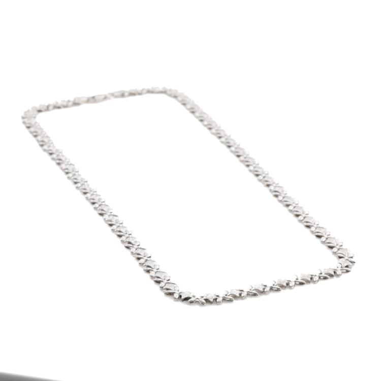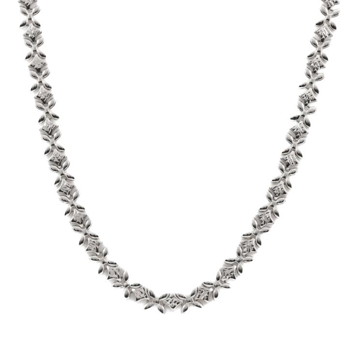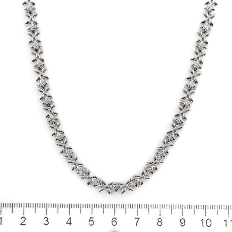 Matching set of 9ct white gold necklace and bracelet with fancy links. Necklace length: 44.5cm. Bracelet length: 18.5cm. Both width: 6.1mm. Total weight: 16.8g. (Pre-owned)
