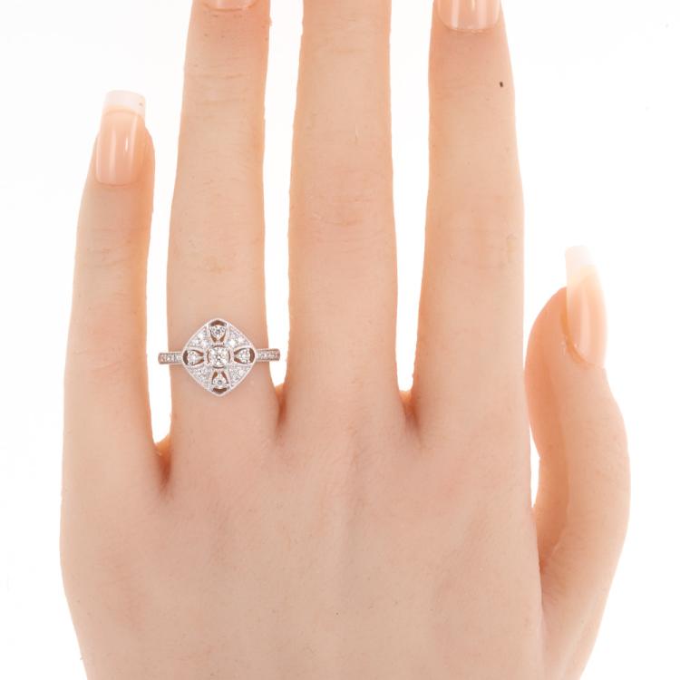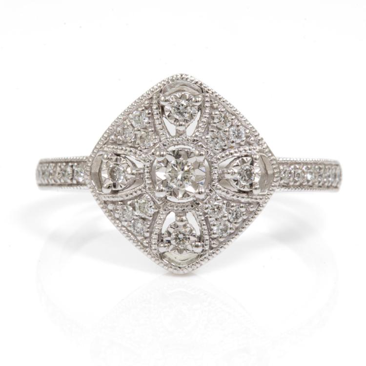 Diamond dress ring with round Natural Diamonds totalling 0.25ct. 18ct white gold. Ring size: N1/2. Band width: 1.7mm. Weight: 3.8g. (As New)