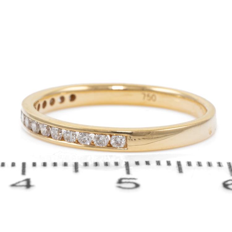 Diamond eternity ring with round Natural Diamonds totalling 0.25ct (Estimated grading: H SI). 18ct yellow gold. Ring size: O - ring resizing not recommended. Band width: 2.3mm. Weight: 2.3g. (As New)