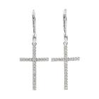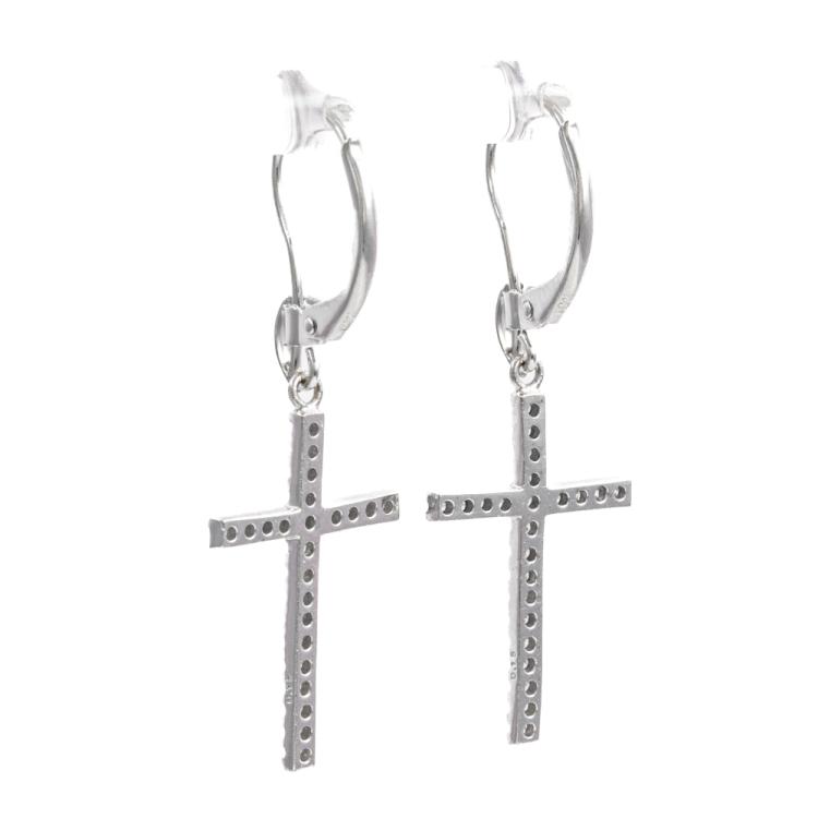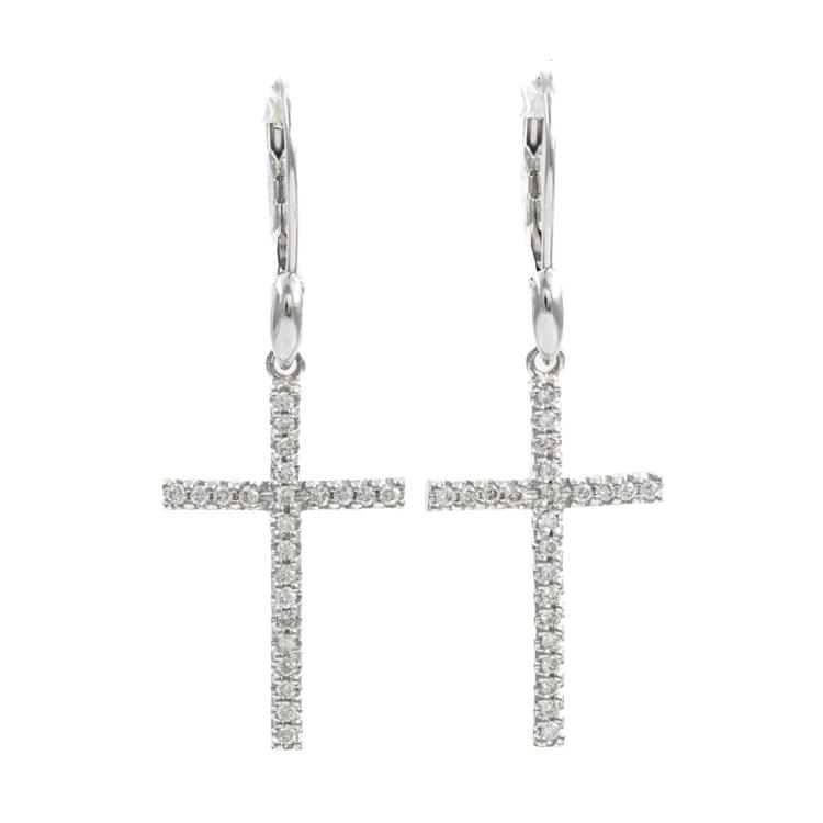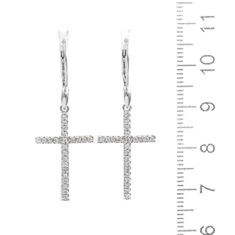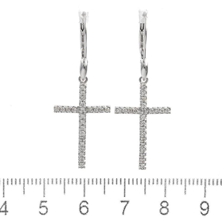 Diamond cross leverback earrings with round Natural Diamonds totalling 0.30ct (Estimated Grading: H SI). 14ct white gold. Weight: 2.9g. (Pre-owned)