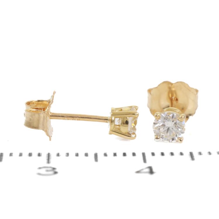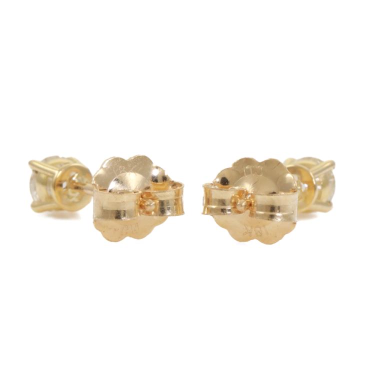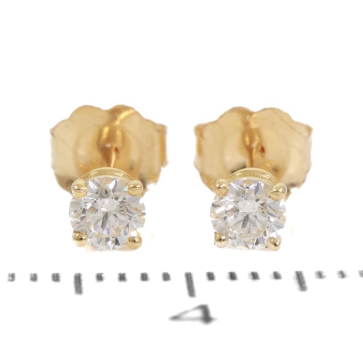 Diamond stud earrings with 2 round brilliant cut Natural Diamonds totalling 0.34ct (Estimated grading: J-K SI). 18ct yellow gold. Weight 0.6g. (New)