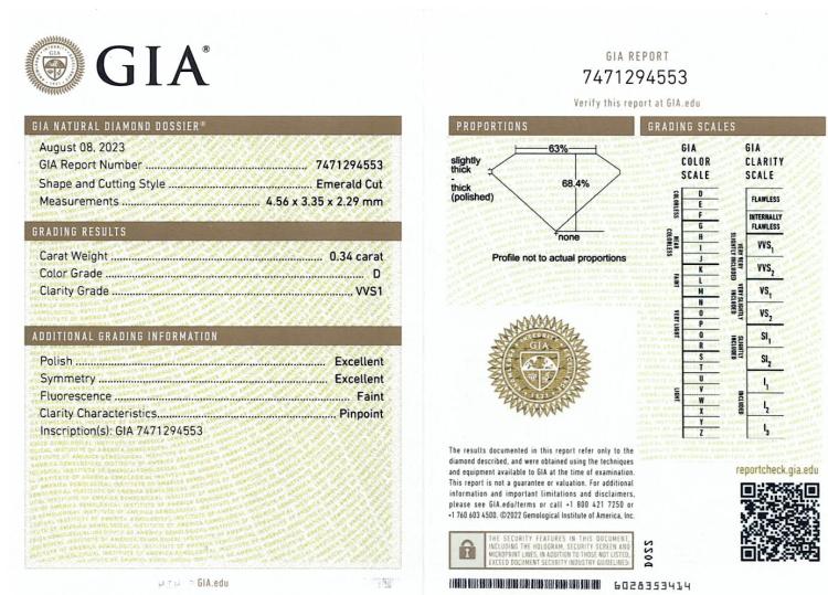 A loose emerald cut Natural Diamond of 0.34ct (with GIA report graded as D VVS1#7471294553