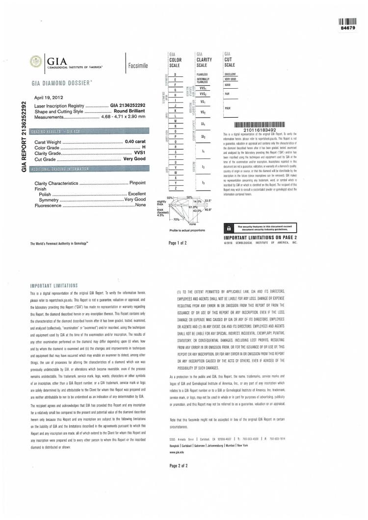 0.40ct Cartier 1895 Solitaire GIA H VVS1