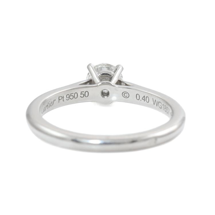 Cartier Solitaire 1895 Diamond ring with a centre round brilliant cut Natural Diamond of 0.40ct (copy of GIA graded as H VVS1 #2136252292). Platinum 950. Stamped size 50, J1/2- ring resizing is not recommended. Band width: 1.9mm - 2.1mm. Weight: 4.0g. With Cartier box. (Pre-owned)
