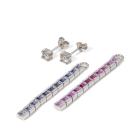 Diamond stud earrings with 2 round brilliant cut Natural Diamonds totalling 0.40ct (Estimated grading: IJ P1) together with detachable multi-colour Natural Sapphires totalling approximately 1.30ct. Platinum 850. Weight: 7.8g. (Pre-owned)