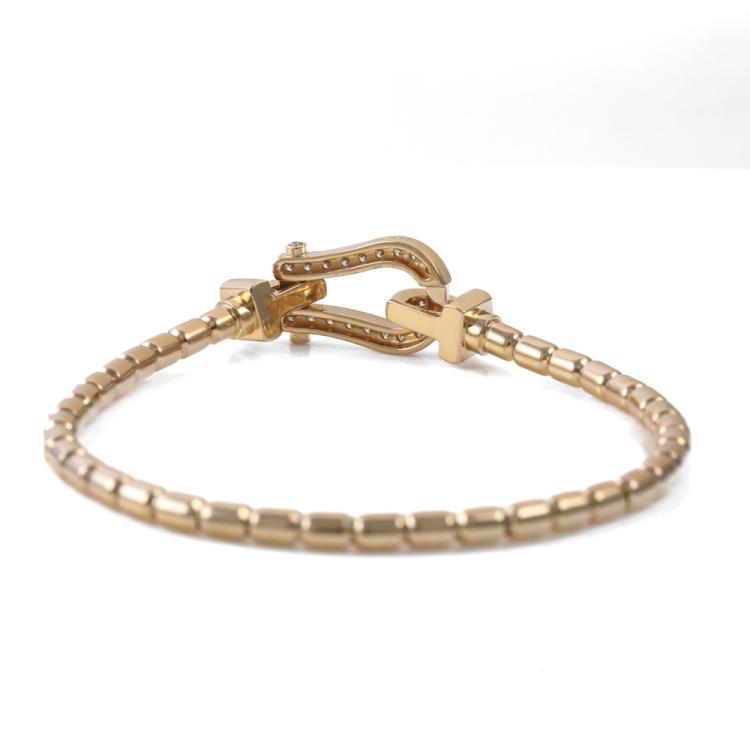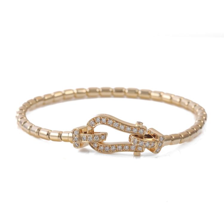 Diamond flexi bracelet with round Natural Diamonds totalling 0.42ct (Estimated grading: J-K SI). 18ct yellow gold. Minimum circumference: 16cm. Weight: 9.4g. (Pre-owned)