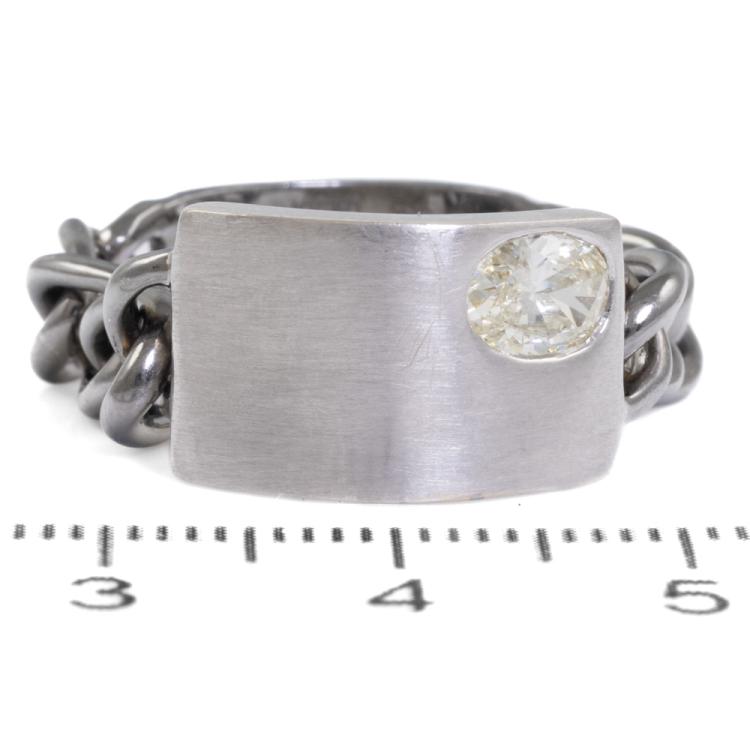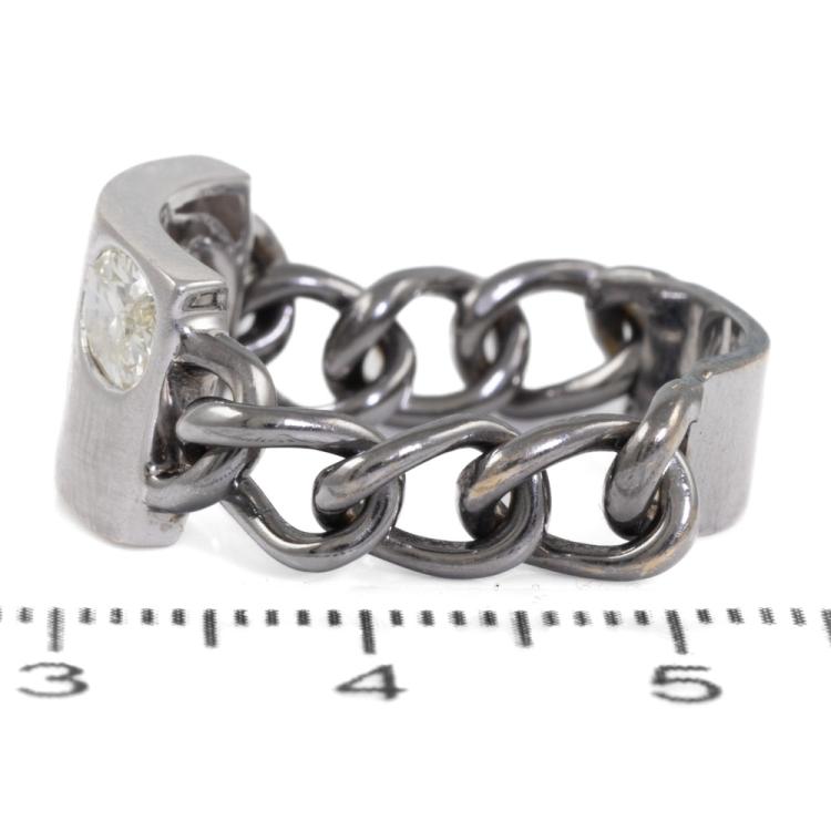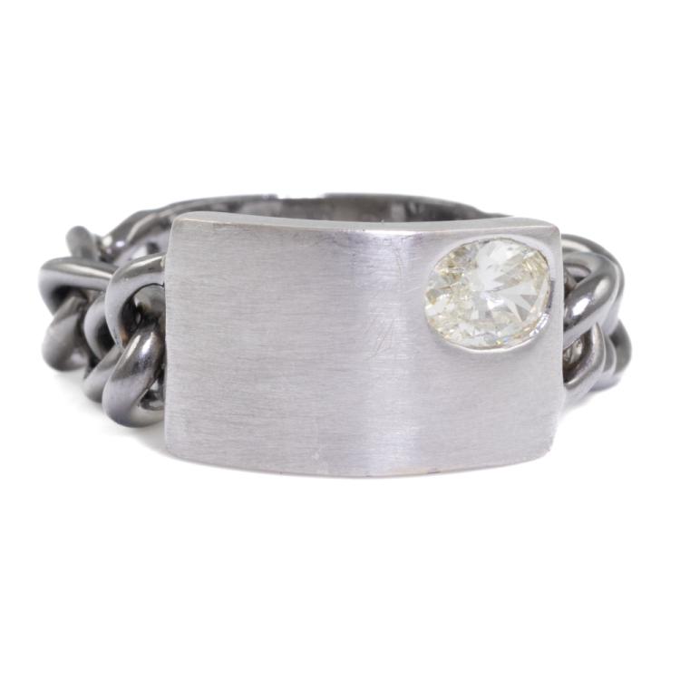 Diamond chain Ring with oval Natural diamond of 0.50ct (Estimated grading: N-O SI). 18ct white gold. Ring size U3/4. Band width 6.4mm - 6.05mm. Weight 7.9g. (Pre-owned)