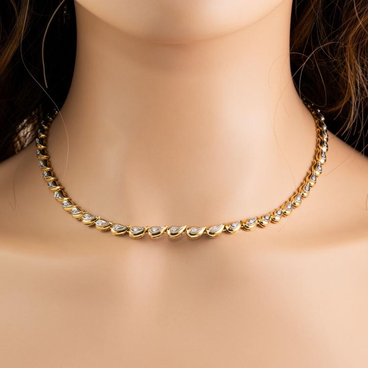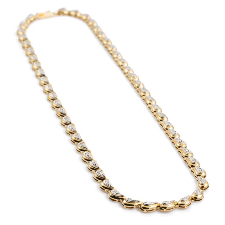 Diamond necklace with round Natural Diamonds totalling approximately 0.50ct (Estimated grading: H-I). 18ct yellow gold and Platinum 900. Length: 42.5cm. Weight: 33.6g. With Valuation Certificate #418524. (Pre-owned)