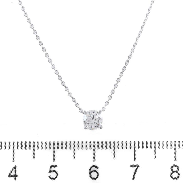 Diamond solitaire pendant with a round brilliant cut Natural Diamond of 0.50ct (with GIA summary report graded as F VVS1#2506059374). 18ct white gold. Length 40.5cm. Weight 1.4g (New)