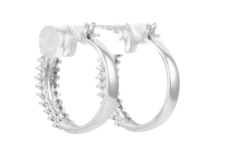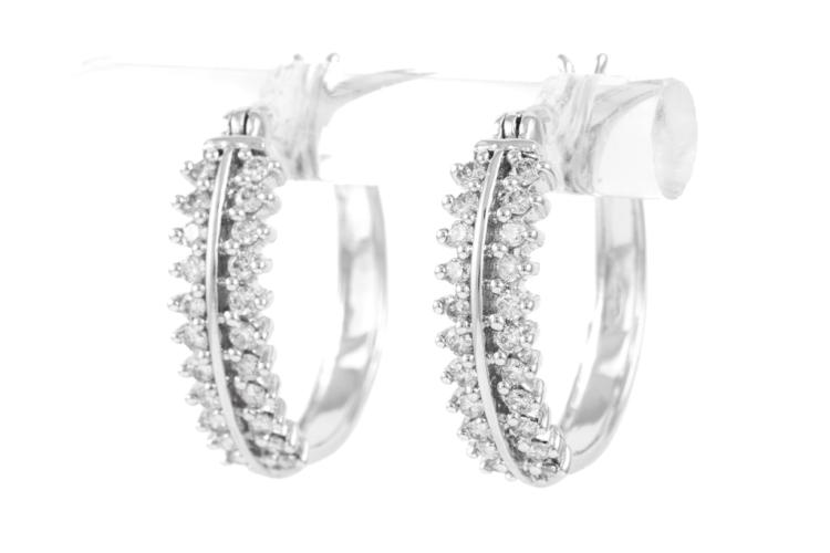 Diamond hoop earrings with 44 round Natural Diamonds totalling 0.50ct (Estimated grading: J-K SI). 14ct white gold. Weight: 4.1g. (New)