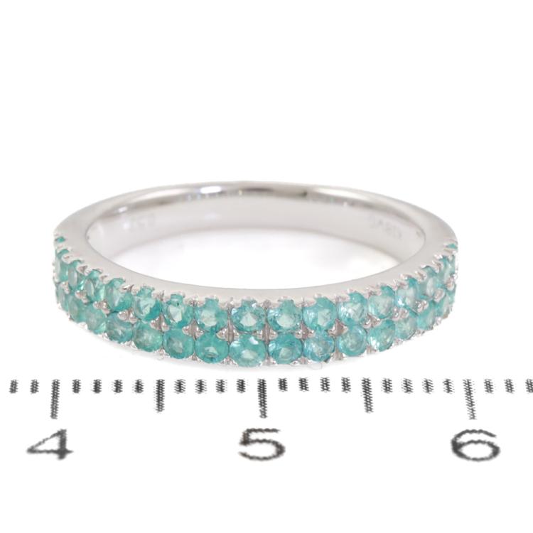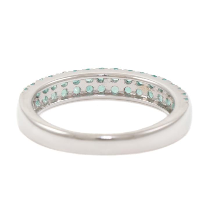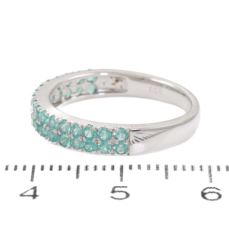Tourmaline and Diamond ring with round Natural Paraiba Tourmaline totalling 0.53ct. 18ct white gold. Ring size L - ring resizing is not recommended. Band width: 2.6mm-3.5mm. Weight: 3.2g. (Pre-owned)