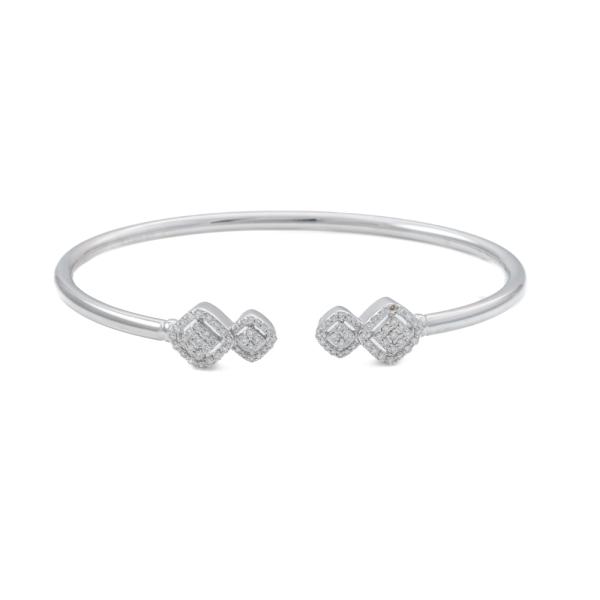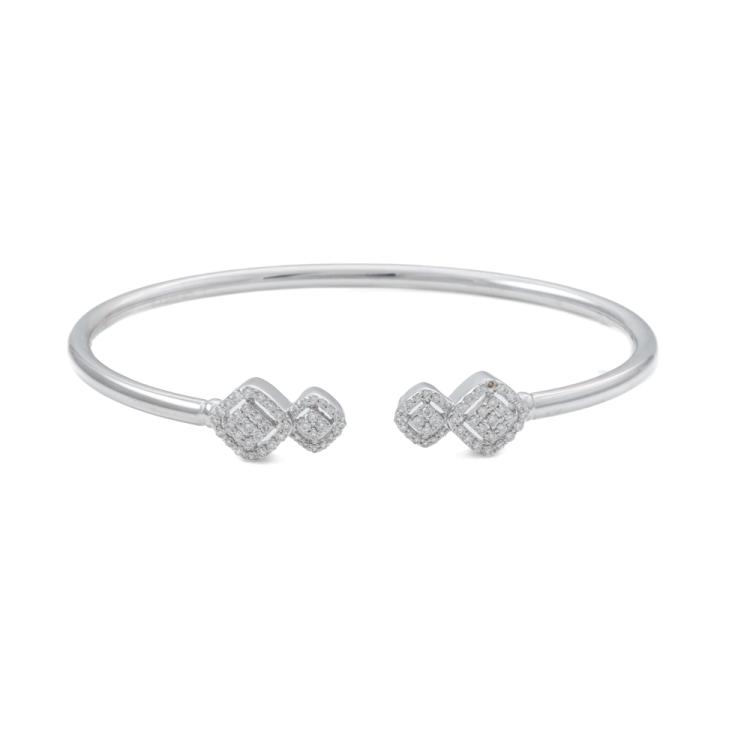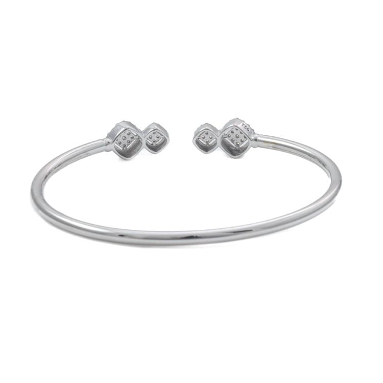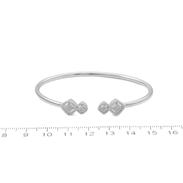 Hollow open bangle with round Natural Diamonds totalling 0.54ct (Estimated grading: I SI. Note 1 stone missing). 18ct white gold. Circumference: 16.5cm. Weight: 8.5g. (Pre-owned)