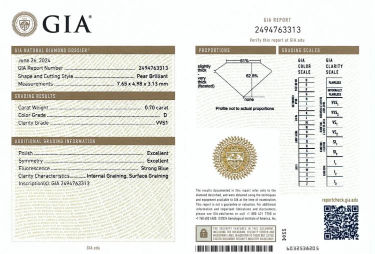 A loose pear shape natural Diamond of 0.70ct (with GIA Summary Report graded as D VVS1#2494763313