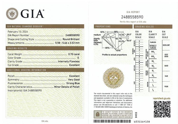 A loose round natural Diamond of 0.70ct (with GIA Summary Report graded as E Internally Flawless #2488558590