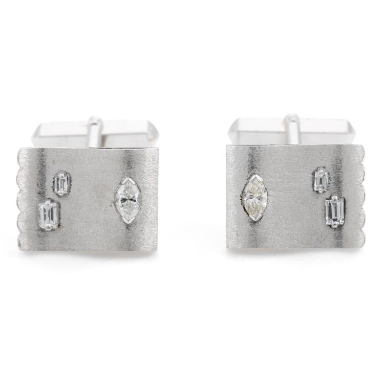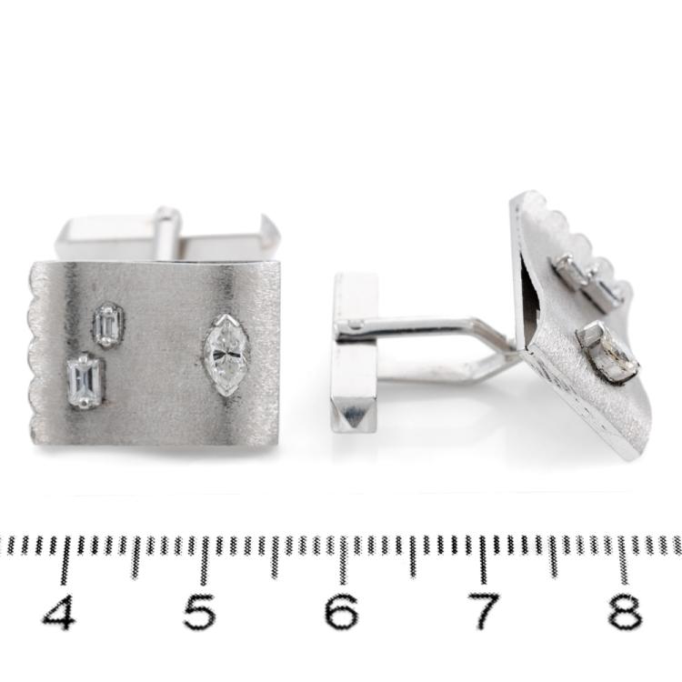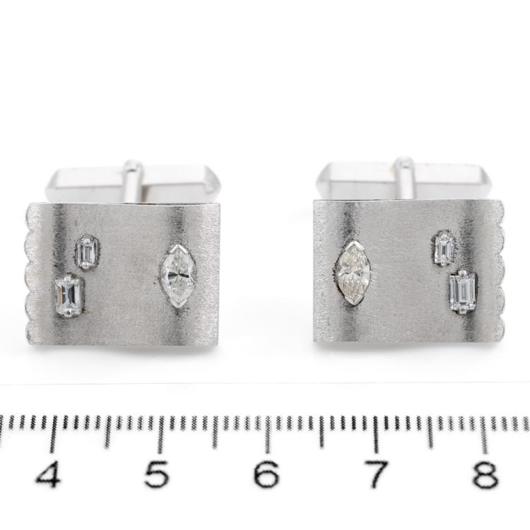 Diamond Cufflinks with marquise & baguette cut Natural Diamonds totalling 0.72ct (Estimated grading: G-H & J VS-SI). Platinum 900 and 14ct white gold. Weight: 15.0g. (Pre-owned)