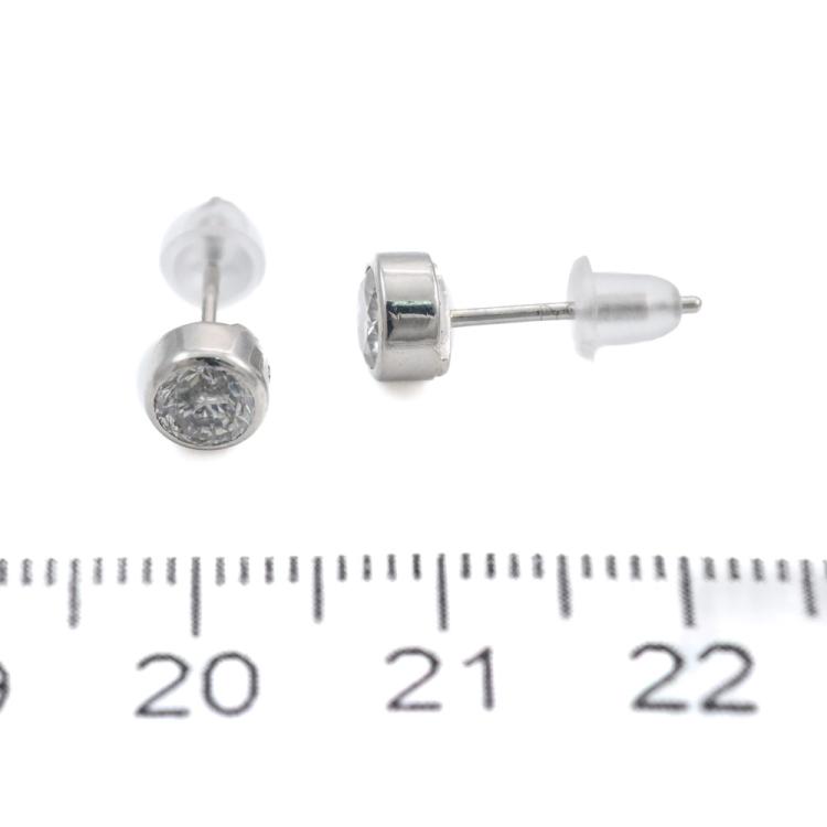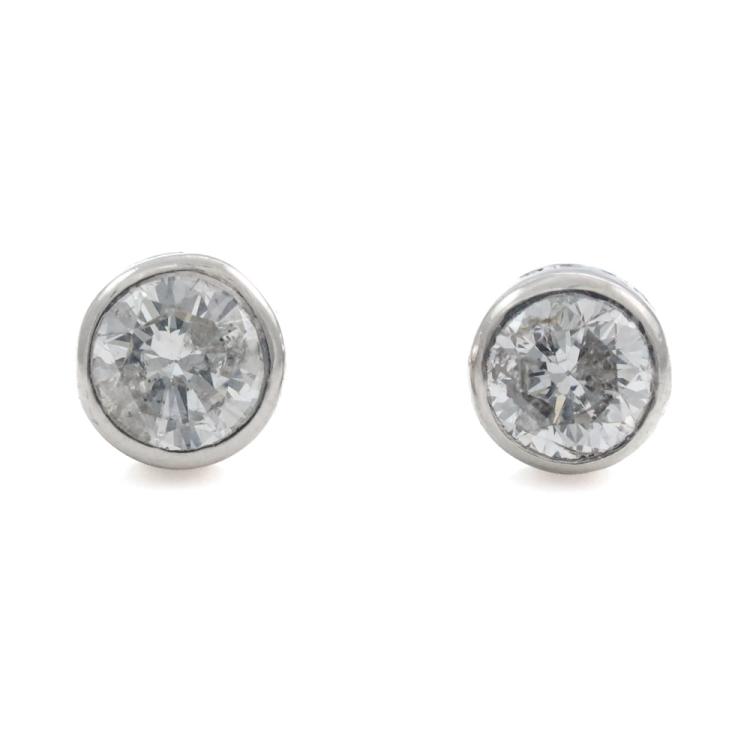 Diamond stud earrings with bezel set round Natural Diamonds totalling 0.75ct (Estimated grading: I-J P2). Platinum-900 with silicon backs. Weight: 1.5g. (Pre-owned)