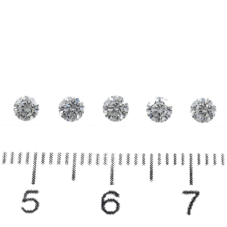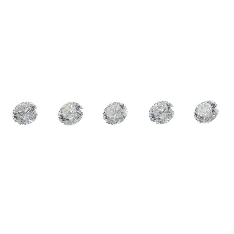 A loose parcel of 5 round Natural Diamonds totalling 0.79ct (Estimated grading: I-K SI). Size: approx. 3.45mm. (New)