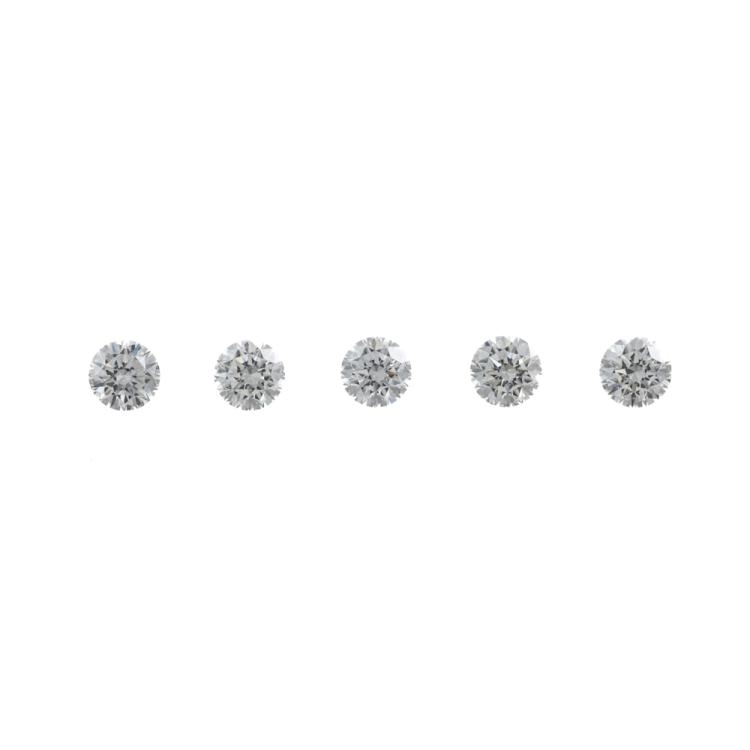 A loose parcel of 5 round Natural Diamonds totalling 0.81ct (Estimated grading: J-K SI ). Size: approximately 3.45mm (New)