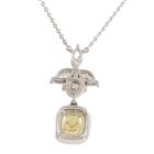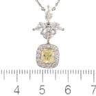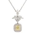 Diamond dress pendant with centre cushion cut Natural Yellow Diamond of 0.83ct (With GIA Report graded as Fancy Light Yellow VVS2 #5221624206 and Burgundy Report graded as Y-Z VVS2 #0395, Origin: Ellendale Diamond Mine, Australia) and round & marquise cut Diamonds totalling 1.25ct (Estimated grading G-H VS). Platinum 950 and 18ct yellow gold with 41cm platinum 950 chain. Weight: 7.2g. (As New)