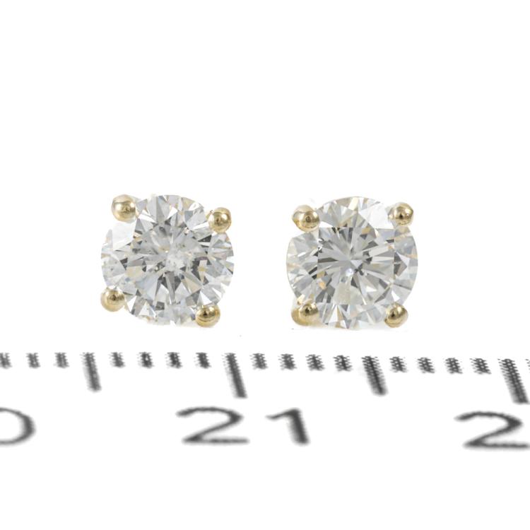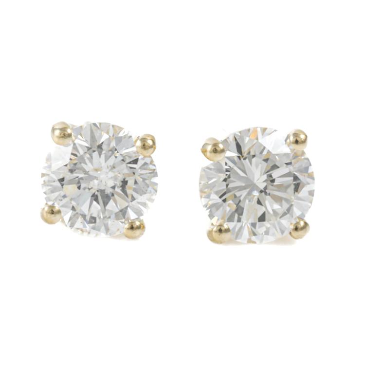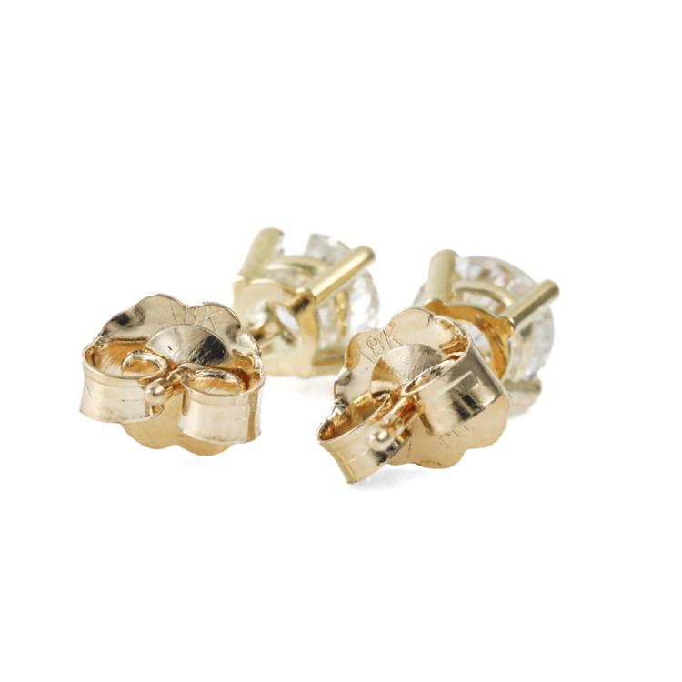 Diamond stud earrings with 2 round brilliant cut Natural Diamonds totalling 0.86ct (Estimated grading: I-J SI). 18ct yellow gold. Weight 0.9g. (New)