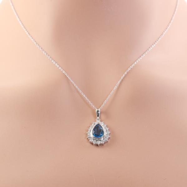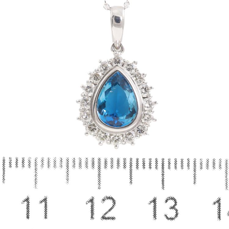 Aquamarine and Diamond pendant with pear shape Natural Aquamarine of approximately 0.90ct and round Natural Diamonds totalling approximately 0.24ct. Platinum 850 (XRF tested, but stamped PT900) with 18ct white gold 41cm chain. Weight: 4.6g. (Pre-owned)