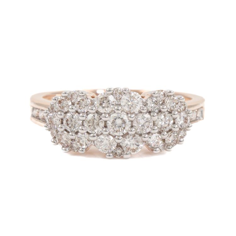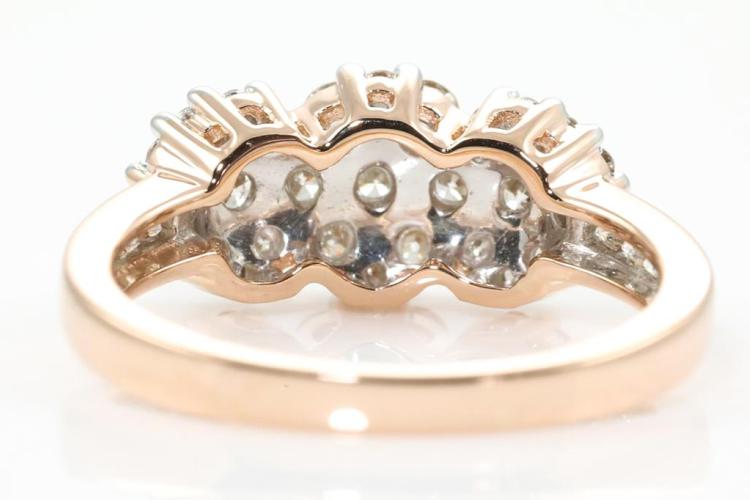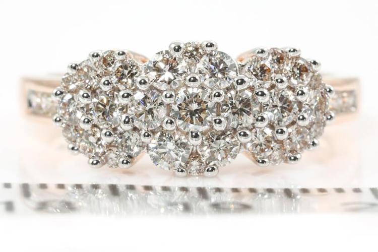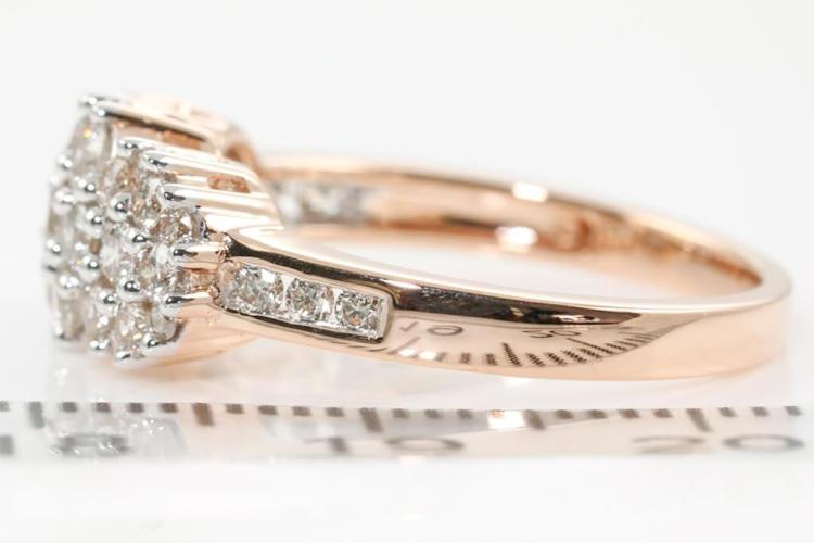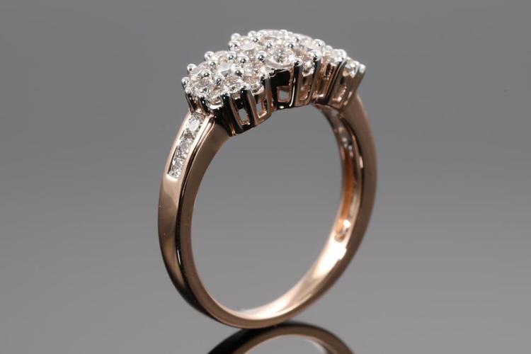 Diamond dress ring with 35 round Natural Diamonds totalling 0.90ct (Estimated grading: H SI). 14ct rose and white gold. Size: M1/2. Weight: 4.0g. (New)