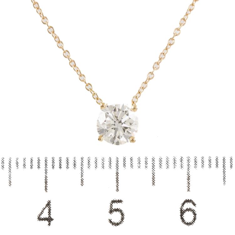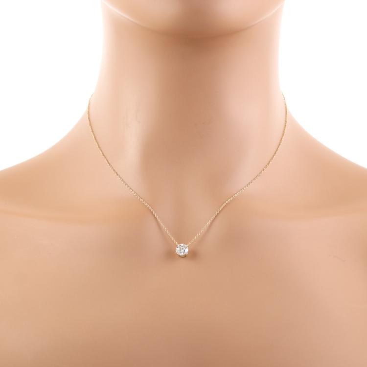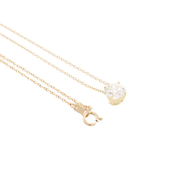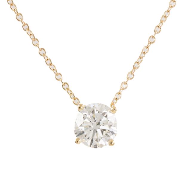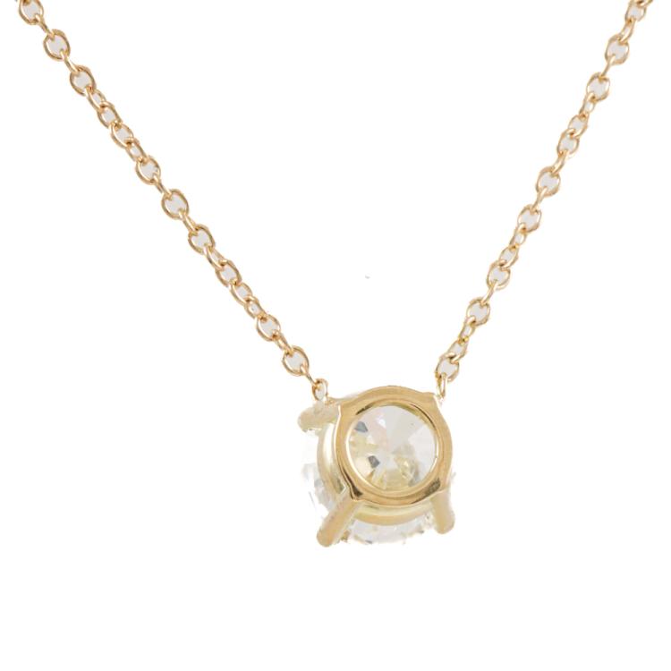 Diamond solitaire pendant with a round brilliant cut Natural Diamond of 0.90ct (with GIA Dossier Report graded as G VVS1 #2235286283). 18ct yellow gold with 18ct yellow gold attached chain. Length: 41cm. Weight 1.6g. (New)