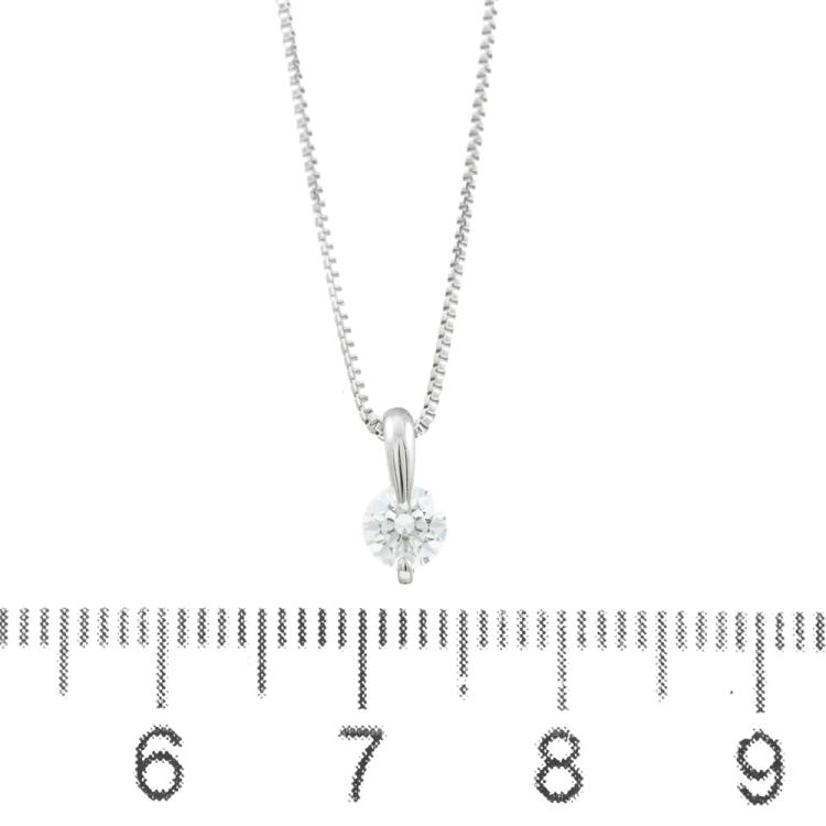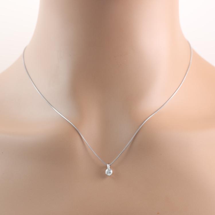 Diamond solitaire pendant with round Natural Diamond of 0.91ct (Estimated grading: I VSI). 18ct white gold with 45cm 18ct white gold adjustable chain. Weight: 2.2g. (Pre-owned)