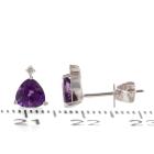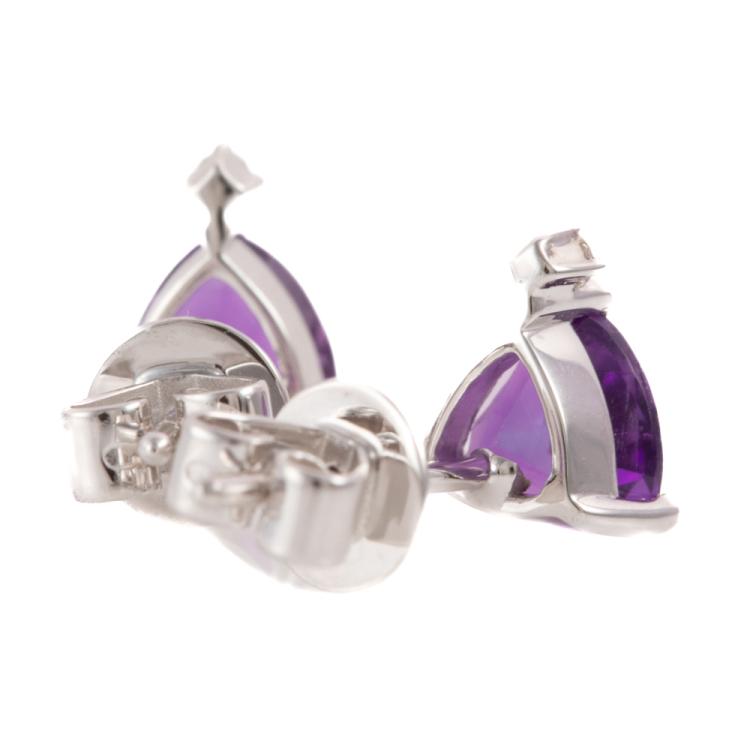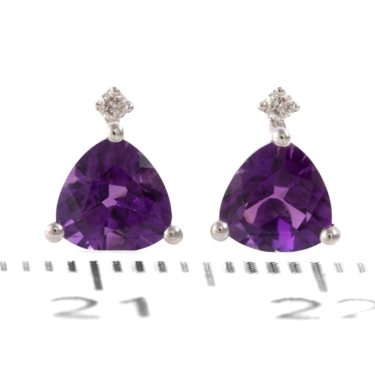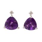 Amethyst and Diamond earrings with trilliant cut Natural Amethyst totalling 0.98ct and round Natural Diamonds totalling 0.02ct. 14ct white gold. Weight: 1.2g. (New)