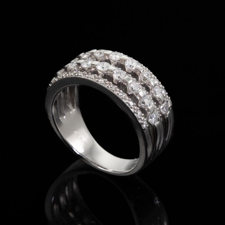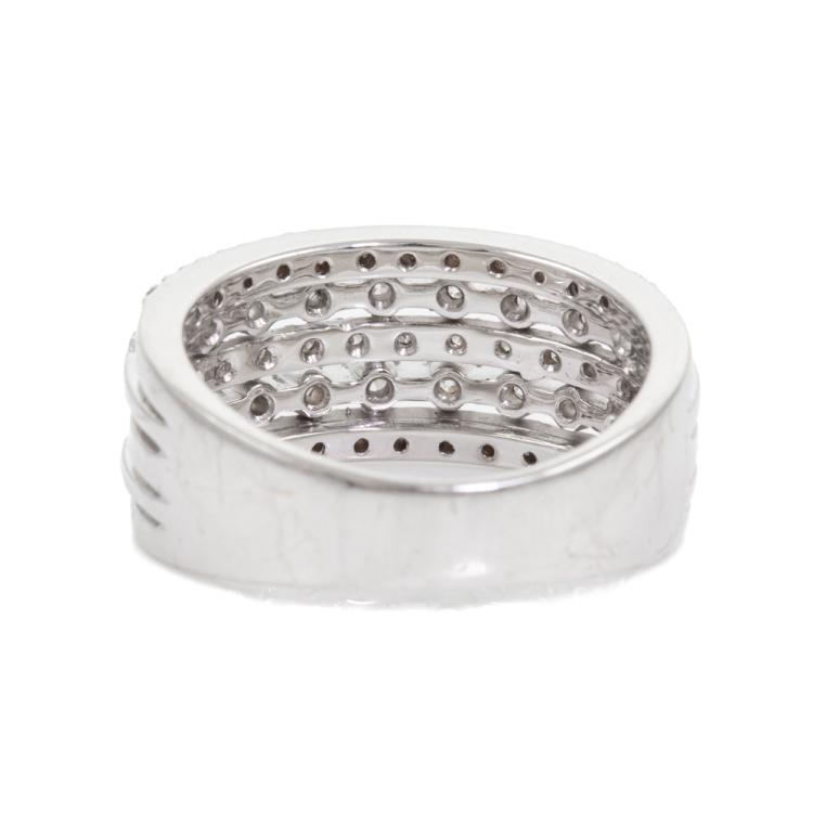 Diamond dress ring with round natural Diamonds totalling 0.99ct (Estimated grading: H P1). 18ct white gold. Ring size K. Band width: 4mm-7mm. Weight: 7g. (Pre-owned)
