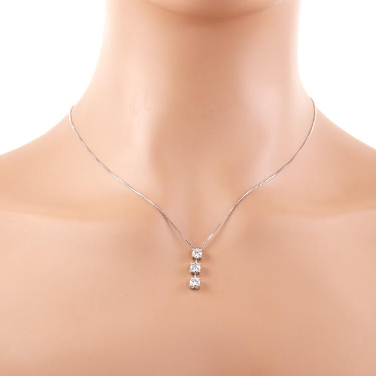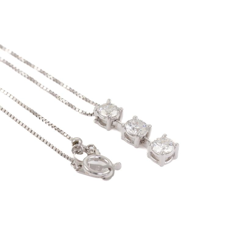 Diamond drop pendant with 3 round brilliant cut natural Diamonds totalling 1.00ct (Estimated grading: G-H SI). Platinum-900 with 45cm 18ct white gold chain. Weight: 4.1g. (Pre-owned)