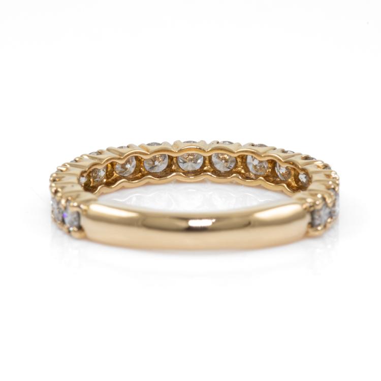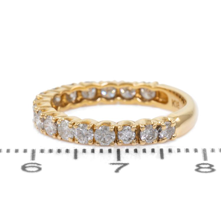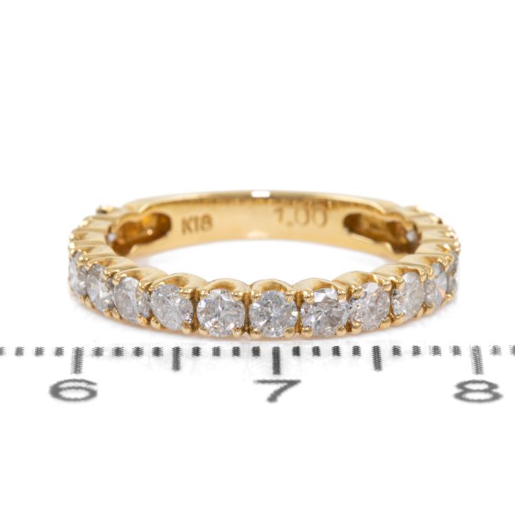 Diamond 3/4 Hoop Eternity Ring with round Natural Diamonds totalling 1.00ct (Estimated grading: I-J P1). 18ct yellow gold. Ring size K1/2 - ring resizing is not recommended. Band width: 2.85mm. Weight: 2.5g. (Pre-owned)