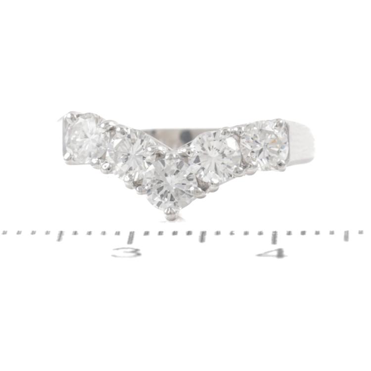 Diamond ring with 5 round Natural Diamonds totalling 1.00ct (Estimated grading: H VS-SI). Platinum - 850. Ring size M. Band with: 2.7mm - 3.2mm. Weight: 4.4g (Pre-owned)
