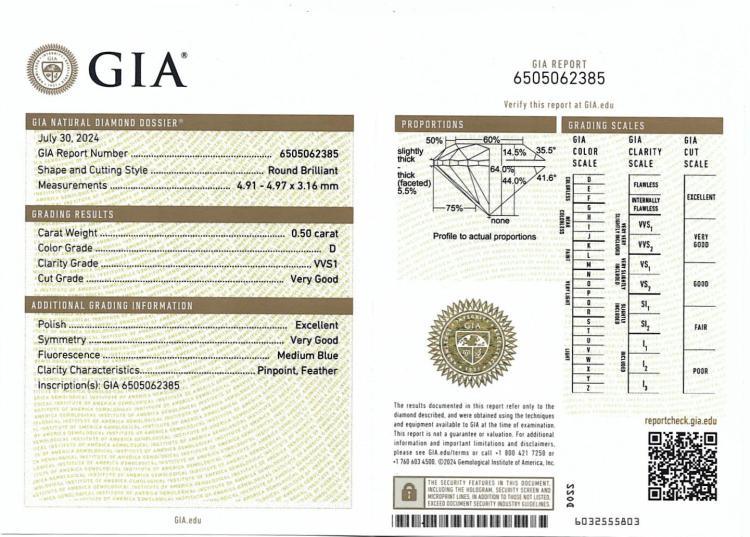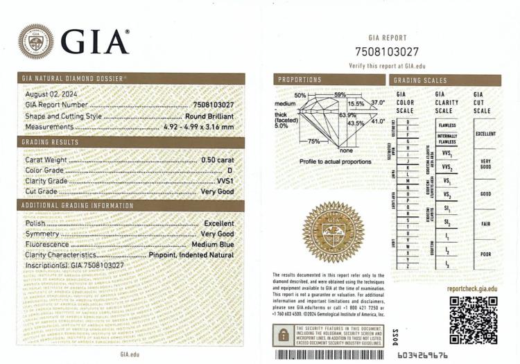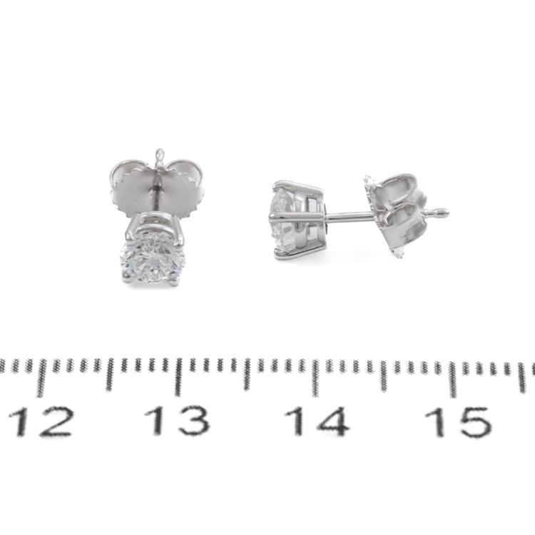 Diamond stud earrings with 2 round brilliant cut Natural Diamonds totalling 1.00ct (with GIA Dossier Reports graded as D VVS1 #6505062385, 7508103027). 18ct white gold. Weight: 1.0g. (New)