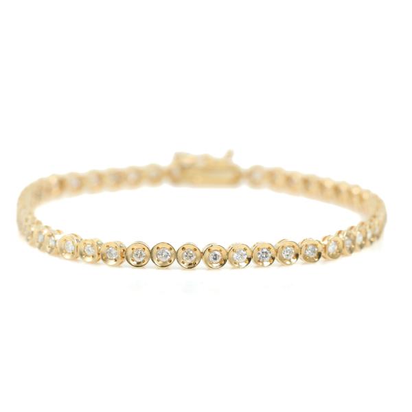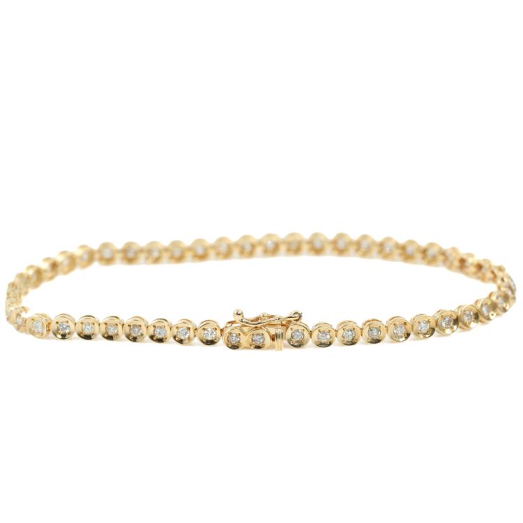 Diamond bracelet with bezel set round Natural Diamonds totalling 1.00ct (Estimated grading: HIJ SI-P1). 18ct yellow gold. Length: 17cm. Weight: 6.2g. (Pre-owned)