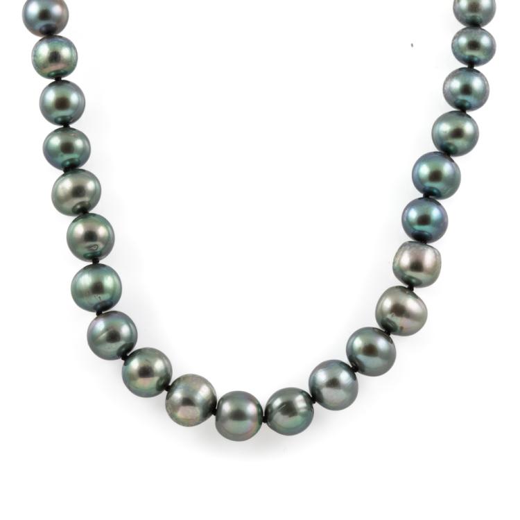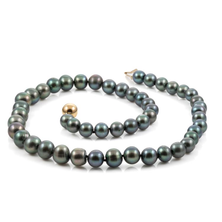 10.12-7.99mm Black Freshwater Pearl Necklace