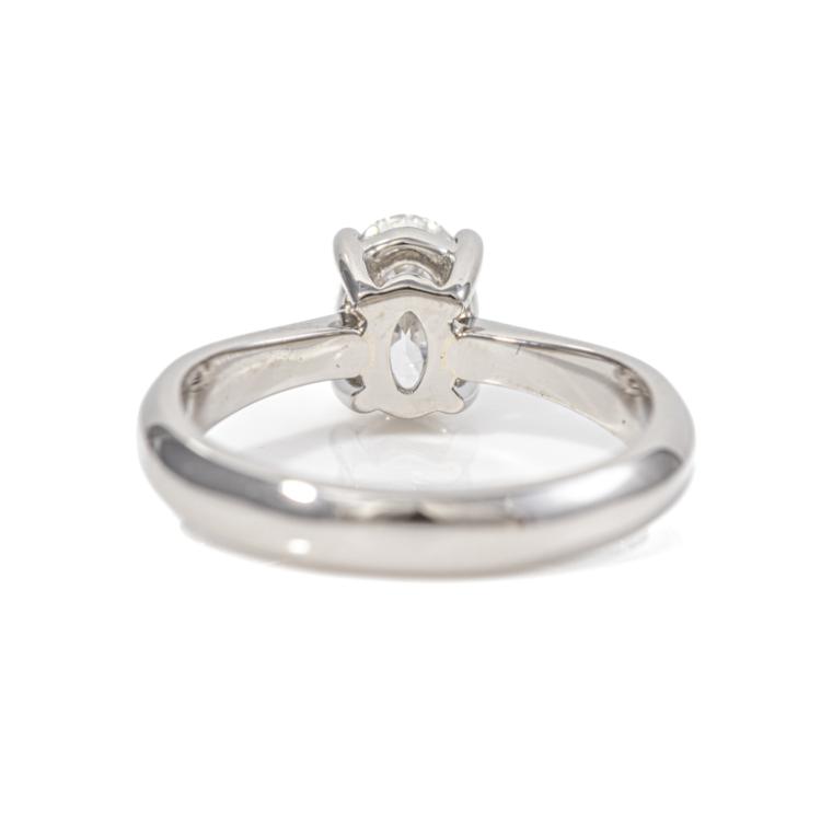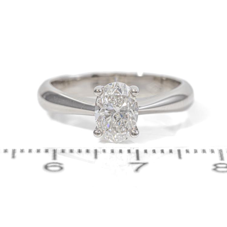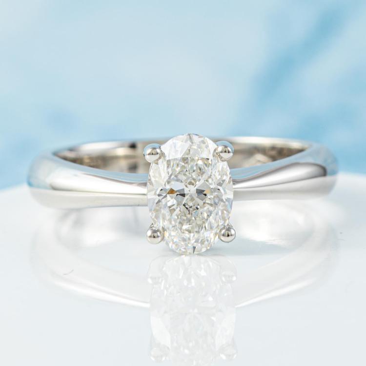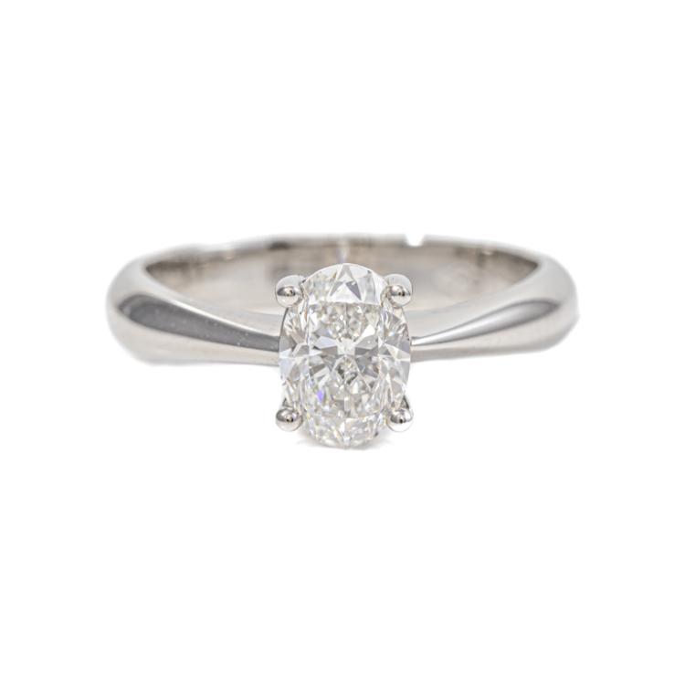 Diamond solitaire ring with oval shape Natural Diamond of 1.01ct (with GIA Report graded as E VS1 #5496066901). Platinum. Ring size K3/4. Band width: 3.2mm - 2mm. Weight 6.2g. (New)