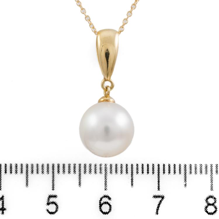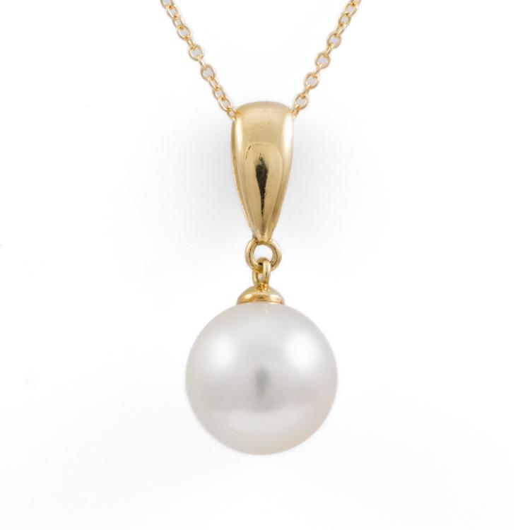 Pearl pendant with South Sea Pearl of 10.2mm. 18ct yellow gold with 40.5cm 18ct yellow gold chain. Weight: 3.7g. (Pre-owned)