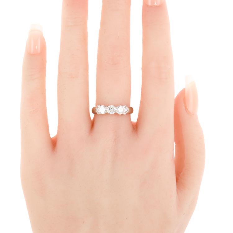 Diamond ring with round Natural Diamonds totalling 1.03ct. (Estimated grading: H-I SI). Platinum - 900. Ring size: O. Band width: 2.4mm - 3.5mm. Weight: 5.3g. (Pre-owned)