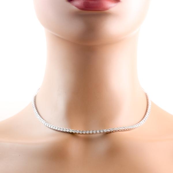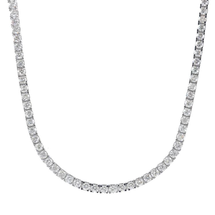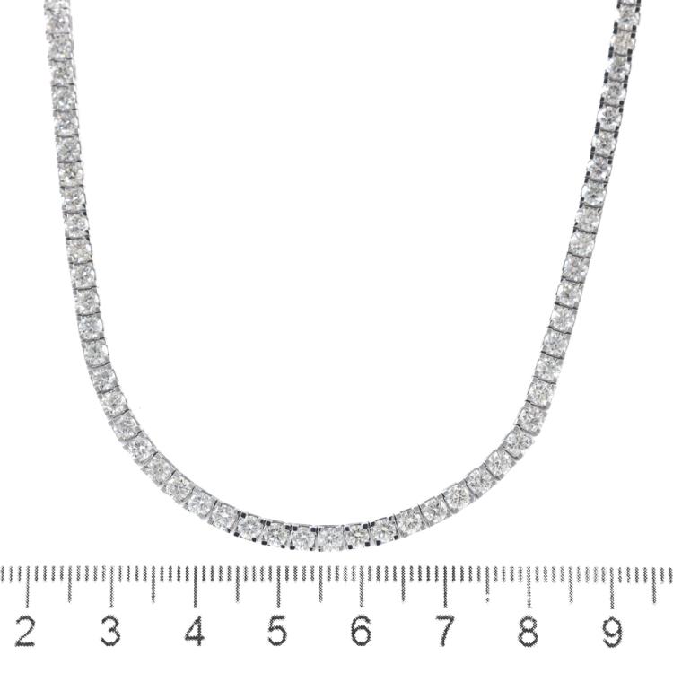 Diamond tennis necklace with 128 round Natural Diamonds totalling 10.48ct (Estimated grading: I-J SI). 14ct white gold. Length: 45.5cm. Weight: 20.0g. With Valuation Certificate #419705. (New)