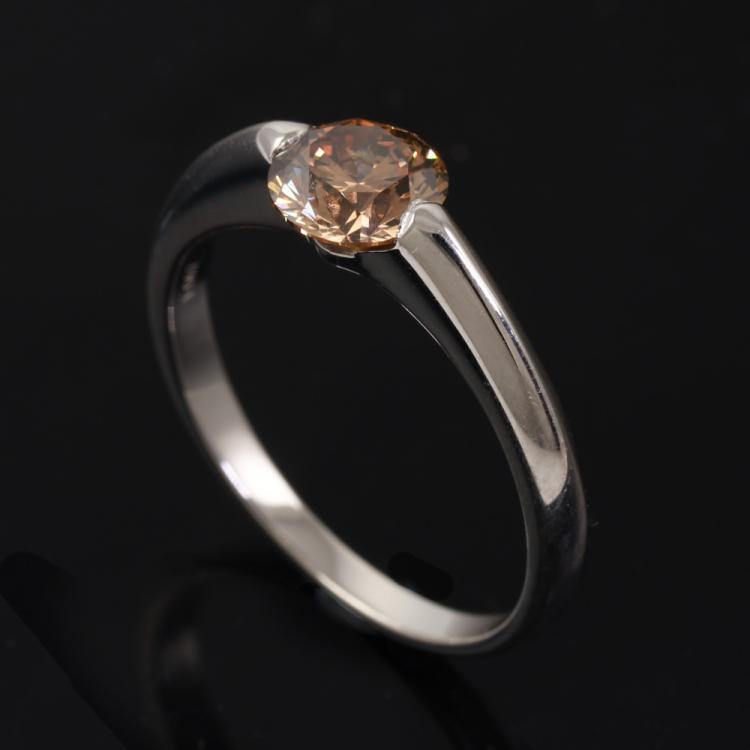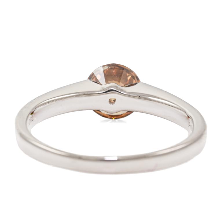 Diamond ring with round Natural Diamond of 1.06ct. (Estimated grading: Fancy Brown SI). Platinum-950. Ring size: O. Band width: 2.0mm - 2.6mm. Weight: 4.9g. (Pre-owned)